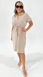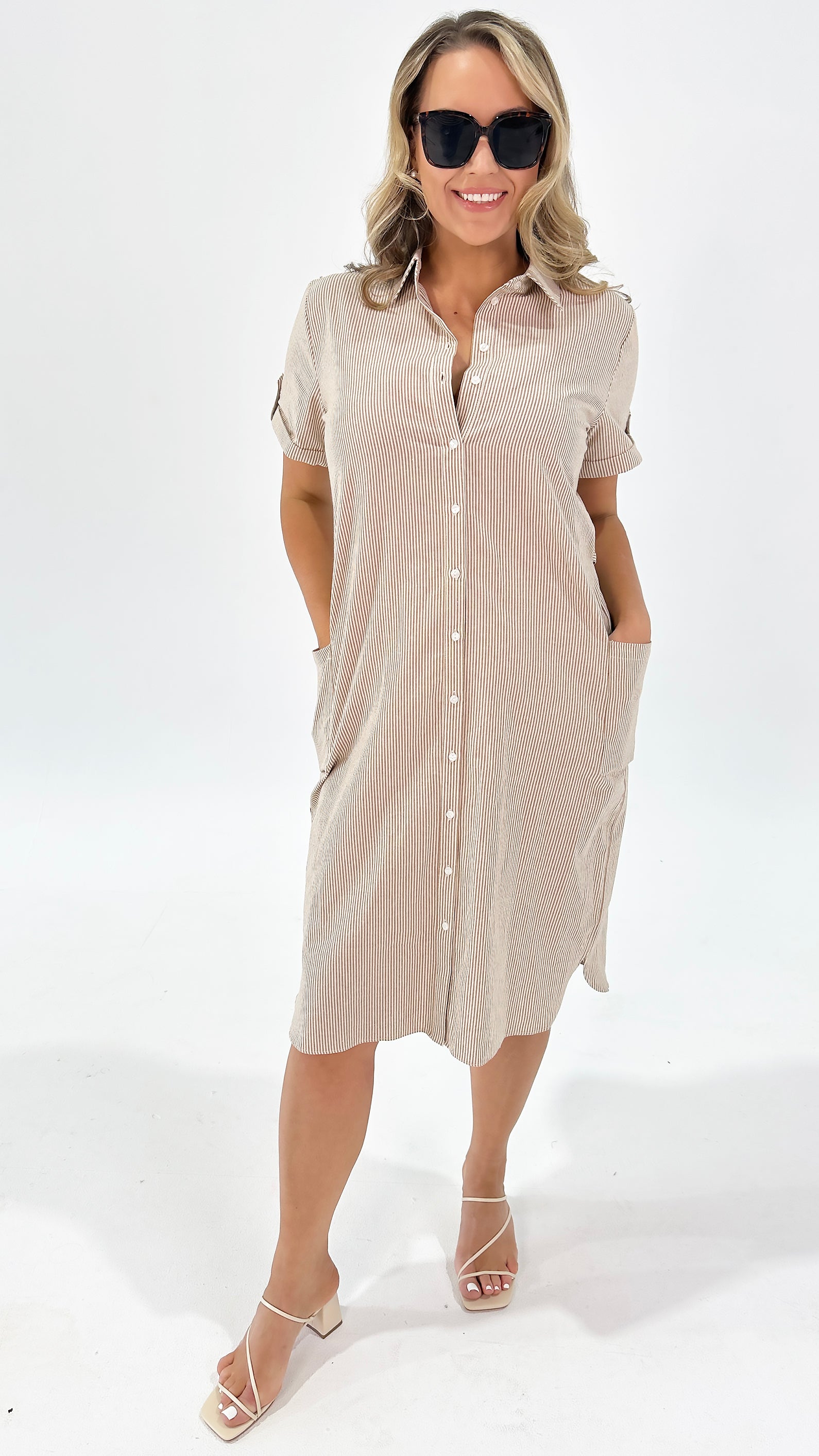 Brave+True Arrival Shirt Dress Latte Pinstripe